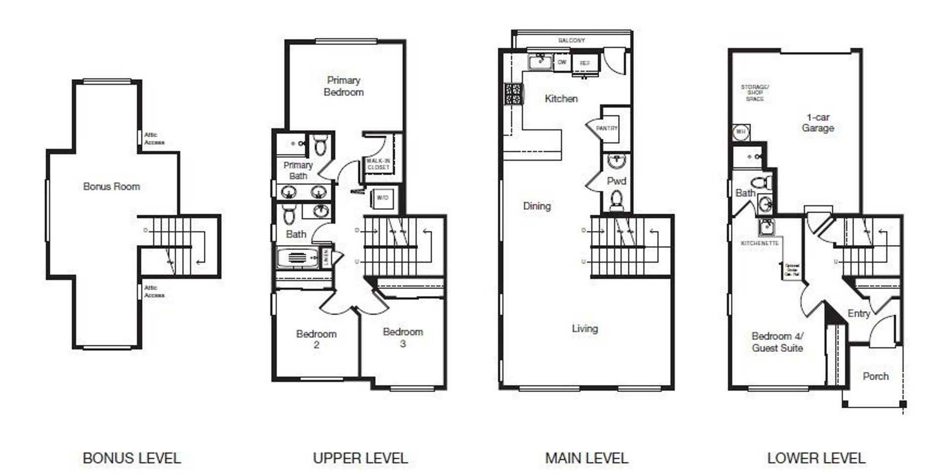 This spacious, open concept townhome features four floors with the bottom room as a Mother in Law Suite & a large bonus room on the top floor! The kitchen has lots cabinet space & beautiful stainless steel appliances, including a gas stove and built in microwave! There's a small balcony off of the kitchen, lots of storage & an attached garage for easy access. There is also a wonderful community pool, tennis court and basketball court nearby as well as shopping and restaurants minutes away!